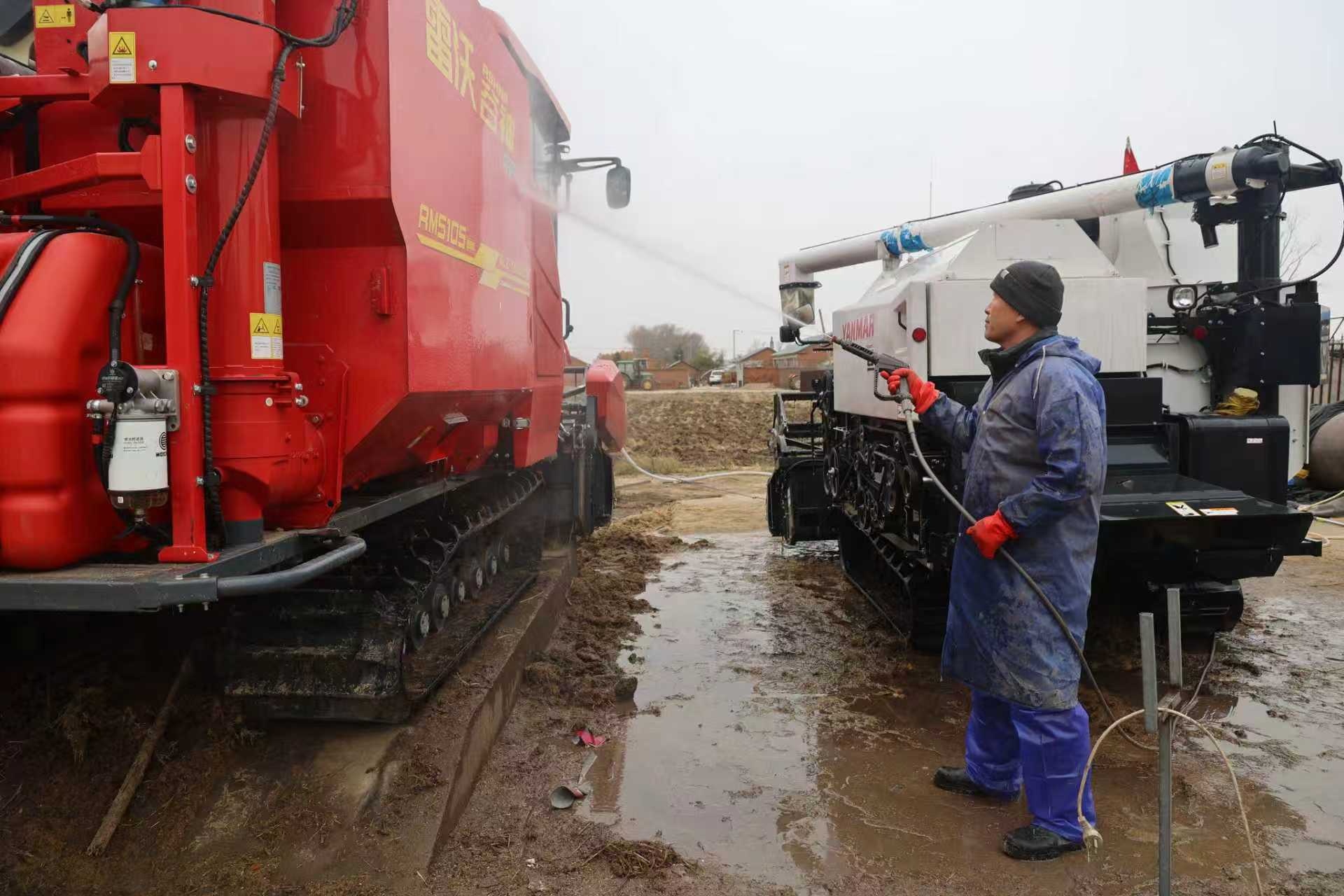 据川北办理区技术员陈雨生介绍,秋收后农机机身附着的杂物若不及时整理,会加快部件锈蚀,极度影响来年作业功能。保证做到“清洗一台、合格一台、入库一台”,让农机以健康状况进入休整期。